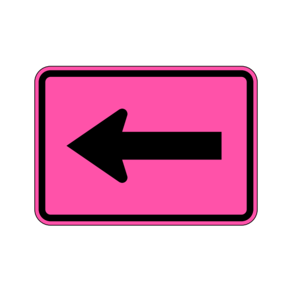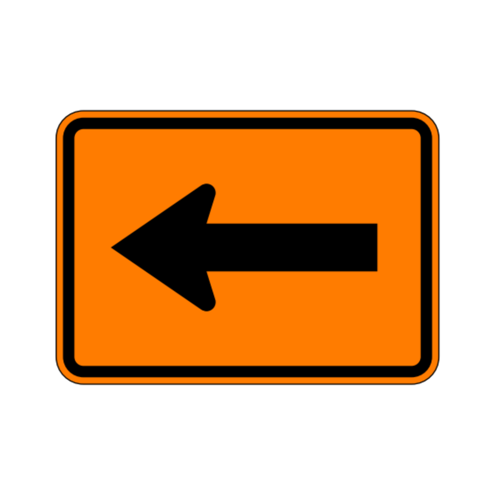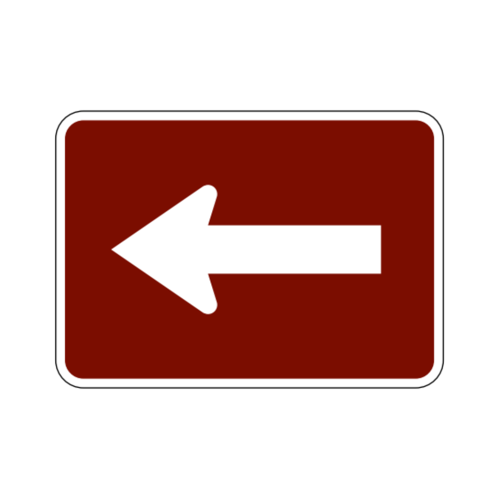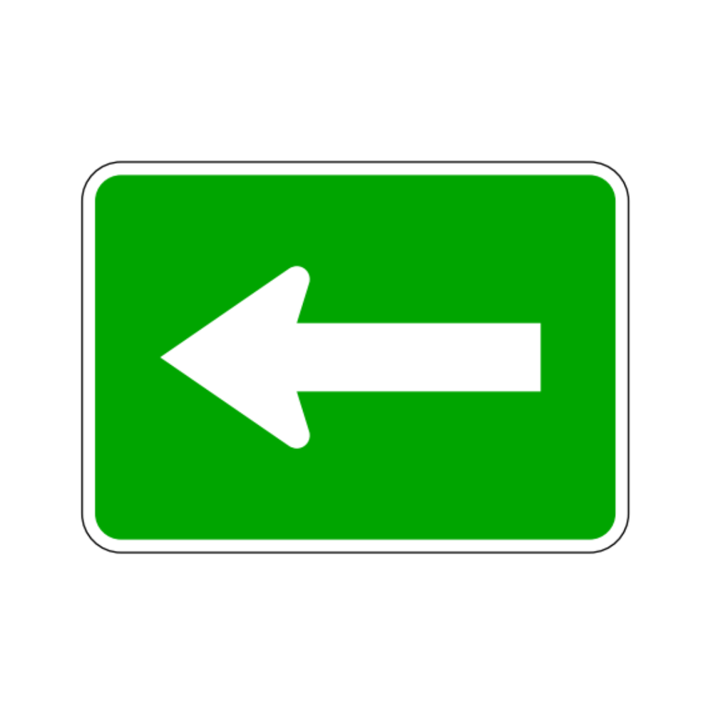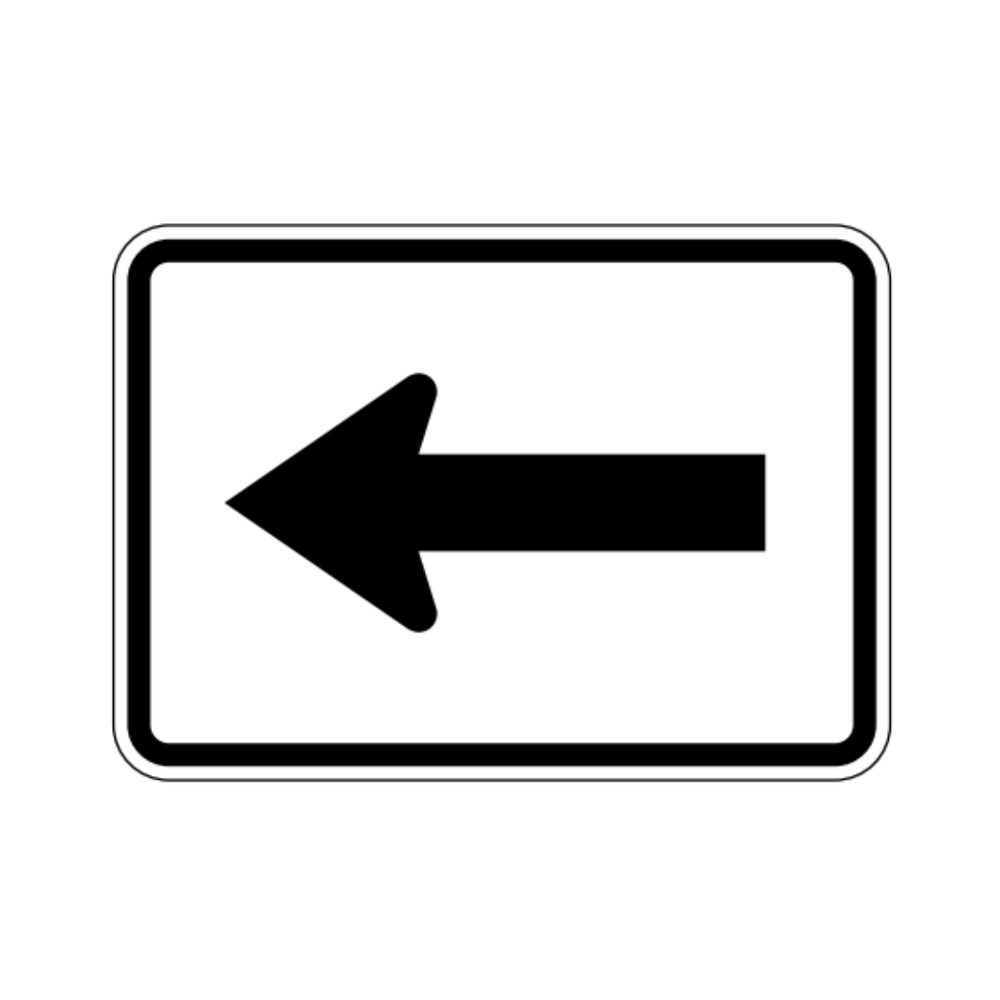 The M6-1L LEFT TURN ARROW (AUXILIARY) sign is a directional guide sign used to clarify that the designated route or movement requires a left turn. Featuring a bold black arrow on a white background, it provides immediate visual guidance for drivers navigating intersections, ramps, and complex roadway configurations. This auxiliary sign is commonly installed beneath primary route markers or regulatory signs to enhance clarity and ensure motorists follow the correct path. Constructed with durable, reflective materials, the LEFT TURN ARROW sign offers high visibility in both daytime and nighttime conditions, contributing to safer navigation and smoother traffic flow.