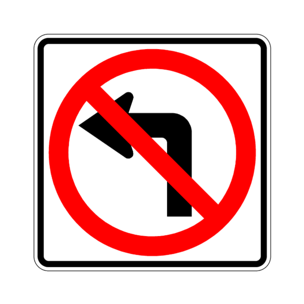 The R3-2 NO LEFT TURN sign is a regulatory traffic sign that informs drivers that left turns are prohibited at the designated location. Featuring a clear symbol with a red prohibition circle, this sign provides quick recognition and helps prevent unsafe turning movements. It is commonly installed at intersections, parking lot exits, private access points, and areas with restricted traffic patterns. By directing drivers to follow approved routes, the NO LEFT TURN sign improves traffic flow efficiency and enhances overall roadway safety. Constructed from durable, reflective materials, it ensures excellent visibility in both daytime and nighttime conditions.